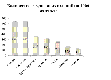 Что касается аудитории ежедневной прессы, то по сравнению с другими странами Франция не является лидером. Соотношение представлено на рис.1: