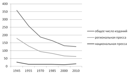 Важность информации в конструировании представлений общества о самом себе подтверждается многочисленными факторами. Каждый год во Франции выходит около 9 млрд. экземпляров газет и журналов, 54% из которых приходится на региональную и департаментскую прессу, каждый второй француз является регулярным потребителем ежедневной прессы. Для того чтобы более отчетливо представлять современную картину в периодической печати Франции, рассмотрим несколько более ранних исследований, проведенных по нашей теме.