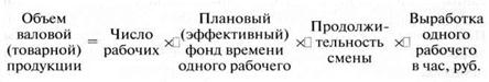 Показатели среднеквартальной и среднегодовой выработки в расчете на одного среднесписочного рабочего (работника) определяются аналогично. Отметим, что объем производства валовой и товарной продукции можно вычислить по формуле: