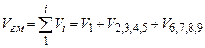 – сумарний об’єм подібних фігур (призм з основою у вигляді прямокутного трикутника однакової площини), а оскільки