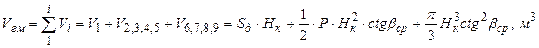 Об’єм кар’єрного поля (об’єм гірничої маси в контурах кар’єра), який характеризує масштаб гірничих робіт, визначають по формулі акад. В.В. Ржевського: