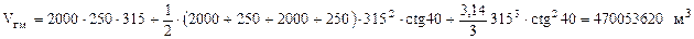 2) Визначаємо загальний об’єм гірничої маси в кар’єрі за формулою В.В. Ржевського: