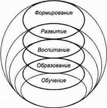 Сообщая обучаемым те или иные знания, педагоги всегда придают им необходимую направленность, формируя как бы попутно, а на самом деле весьма обстоятельно важнейшие мировоззренческие, социальные, идеологические, нравственные и многие другие установки. Поэтому обучение имеет воспитывающий характер. Точно так же мы должны признать, что в любом воспитании всегда содержатся элементы обучения. Обучая — воспитываем, воспитывая — обучаем. Области понятий «воспитание» и «обучение» частично перекрываются.
