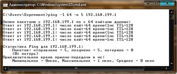 Задание:Проверьте функционирование шлюза по умолчанию, послав 5 эхо-пакетов длиной 64 байта.[3]