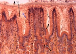 1. а) Эпителий, покрывающий поверхность слизистой оболочки (в т.ч. в области ямок), - однослойный призматический железистый(1.Б).