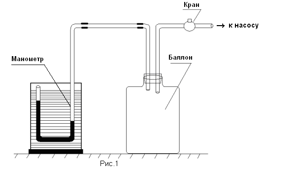 Установка представляет собой закрытый баллон, соединенный с водяным манометром и насосом (рис.1).