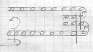 4. З’єднання коміра з виробом з лацканами, застібкою до гори та з підбортами. Починають з’єднання коміра з обшивання лівого уступу борта і вшивання лівої сторони коміра у горловину пілочки одночасно з підбортом. За 10 мм до плечового шва машину зупиняють, горішній комір та припуск на шов надсікають і далі вшивають тільки нижній комір у горловину спинки на 10мм за правий плечовий шов. Машину знову зупиняють, надсікають горішній комір і вшивають у горловину праву частину коміра одночасно з підбортом та обшивають правий уступ борта. Припуски в уступі надсікають, підборта вивертають, виправляють і зріз стійки горішнього коміра між надсічками підгинають і настрочують в шов вшивання нижнього коміра, закриваючи його.
