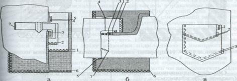 в - обметування внутрішнього зрізу з неклейовою прокладкою.