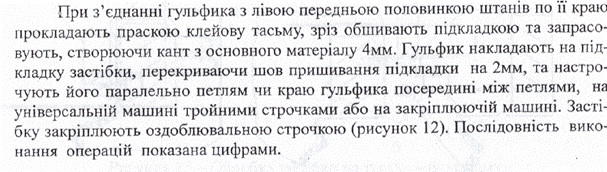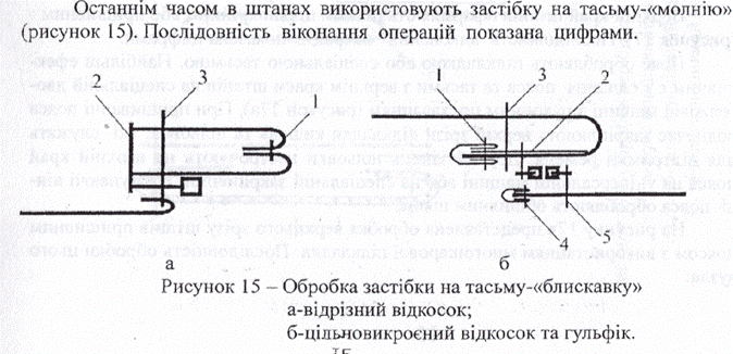 Застібка лівої пілочки з обробкою внутрішнього зрізу обшивкою