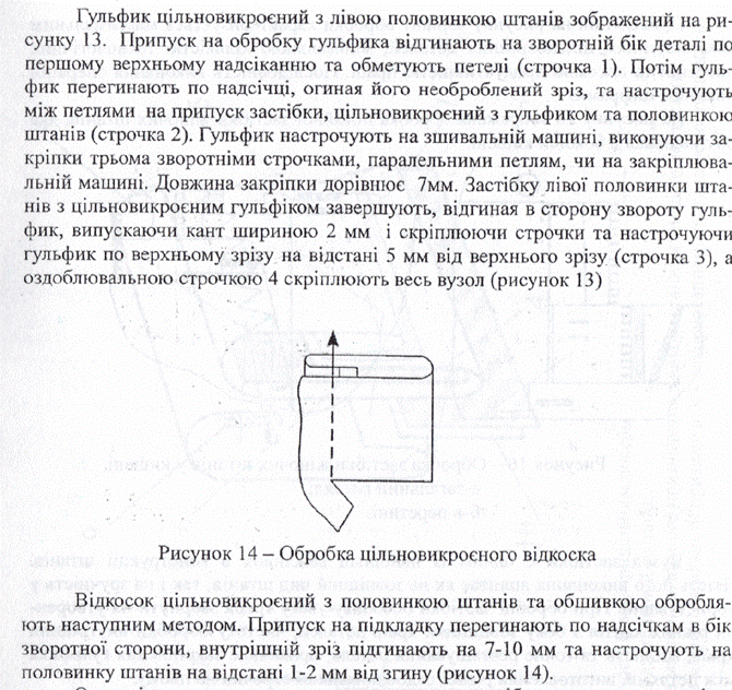 Ширина підкладки менше від ширини деталі на 0,5-1,0 см в зоні коліна. Нижній зріз підкладки обметаний, або в залежності від підкладки обметаний, або в залежності від підкладки, висікають кутиками (зубчиками).