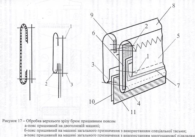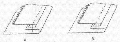 б - обметування внутрішнього зрізу з клейовою прокладкою;
