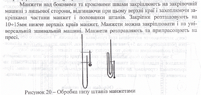 · Обробка манжет (зєднання манжети з прокладкою та підготовка її до зєднання, виметування петель).