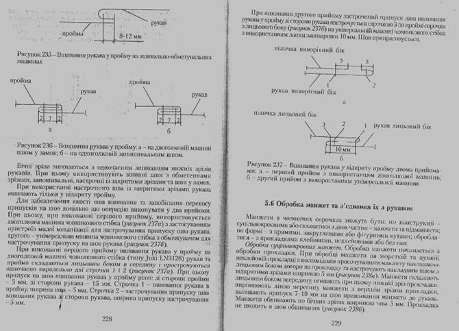 e. Методи обробки рукавів чоловічих сорочок і з'єднання їх з виробом.