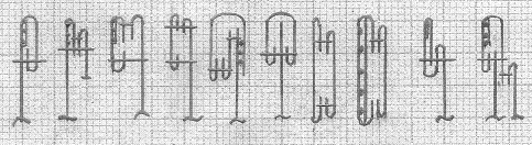 Обробка найбільш розповсюджених видів непрорізних кишень представлена па рисунку 171. Послідовність виконання операцій показана цифрами. Обробка кишені {рисунок 171а) починається з настрочування строчкою 1 на плоскошовній машині зрізу підкроєного бочка на підкладку кишені. По лініях згинів передніх половинок по надсічках приклеюють прокладку чи кромку з невеликим натягом, а потім запрасовують згин передніх половинок. Уклавши в згин передніх половинок зріз підкладки кишені, прокладають оздоблювальну строчку 2 на відстані передбаченій ТУ. Строчкою 3 настрочують суцільнокроєні обшивки на підкладку кишені. Для фіксації верхніх зрізів бічної кишені прокладають строчку 4. Зшивають бічні зрізи по передніх половинках штанів (строчка 5). Строчкою 6 зшивають підкладку з одночасним обметуванням зрізів кишені; виконуються закріпку 7 для закріплення кишені. Закріпку слід виконувати в нижній частині кишені під кутом 90°, переходячи за бічний шов на 2-3 мм, та на 10-15 мм нижче поясу штанів по оздоблювальній строчці або паралельно поясу [3].