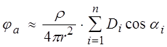 де n – загальна кількість диполів, r – відстань від центру струмового диполя до точки відведення, r – питомий опір середовища. Вираз