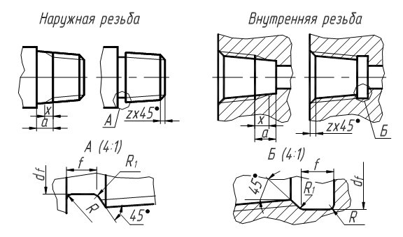 | Сбег Х не более | Недорез а не более | Проточка | Фаска z | Сбег Х не более | Недорез а не более | Проточка | Фаска z | |||||||