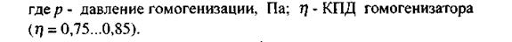 где р - давление гомогенизации, Па; с -Дж/(кг К) - удельная теплоемкость; ρ- кг/м - плотность продукта, кг/м .