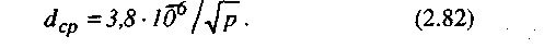 Средний диаметр частиц, м, в диапазоне изменения давления от 2,0 до 20,0 МПа определяется по формуле