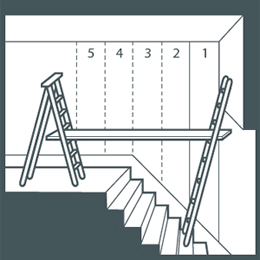 Установите леса из двух лестниц и начните с самой длинной полосы обоев