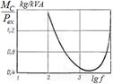 The graphic image of dependence of capacitor specific mass on frequency is presented on a fig. 11. The got result (48) shows that specific mass of capacitors does not depend on voltage and is minimum on frequency 2400 Hz. A circuit of capacitors connection does not import also: a star or triangle − mass of capacitors is identical. It is important only, that capacitors were used at their voltage rating.