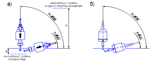 Допускается топливный насос монтировать отдельно от нагревателя. Пространственное положение топливного насоса и фильтра (если он установлен) должно соответствовать Рис. 39.