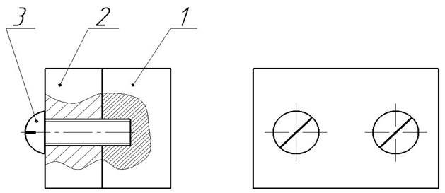 Упрощенное изображение винтового соединения (1,2 — соединяемые детали; 3 — винт)