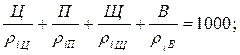 1) сума абсолютних об’ємів усіх компонентів 1 м3 бетону дорівнює 1000 л, тобто