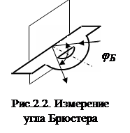 Измерить транспортиром угол Брюстера φБ (рис.2.2), при котором наблюдается почти полное гашение светового пятна на экране.