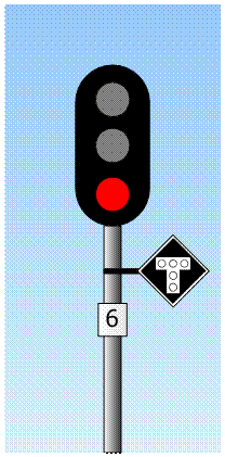 На участках с автоблокировкой условно-разрешающий сигнал подается щитом со светоотражающим знаком прозрачно-белого цвета в виде буквы "Т" (рис. 5.45), разрешает грузовому поезду проследование светофора с красным огнем со скоростью не более 20 км/ч с особой бдительностью и готовностью немедленно остановиться, если встретится препятствие для дальнейшего движения. Щит устанавливается на мачте проходного светофора (указателя границы блок-участков), расположенного на затяжном подъеме.