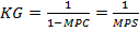Мультипликатор показывает- НА СКОЛЬКО ВОЗРАСТЕТ РЕАЛЬНЫЙ ВВП ИЛИ НД В РЕЗУЛЬТАТЕ УВЕЛИЧЕНИЯ РАСХОДВ ГОСУДАРСТВА НА ЗАКУПКУ ТОВРАОВ И УСЛУГ.
