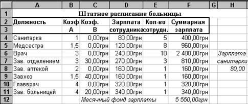 Пусть известно, что для нормальной работы больницы необходимо 5-7 санитарок, 8-10 медсестер, 10 врачей, 3 заведующих отделениями, главный врач, заведующий аптекой, заведующая хозяйством и заведующий больницей. Общий месячный фонд зарплаты должен быть минимален. Необходимо определить, какими должны быть оклады сотрудников больницы, при условии, что оклад санитарки не должен быть меньше прожиточного минимума 80 грн.