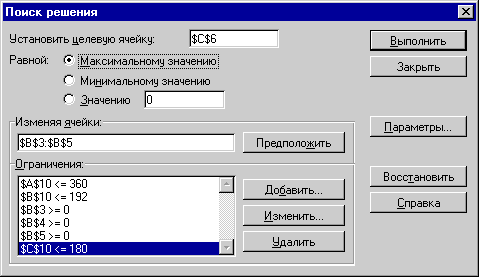 Книга Solvsamp.xls, входящая в состав Excel, в папке Examples\Solver содержит более сложные примеры использования средств процедуры Поиска решения.
