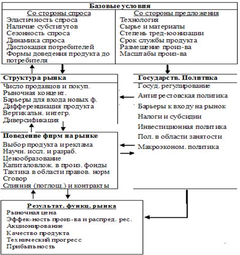 | Структура рынка | → | Поведение фирмы | → | Результативность рынка |