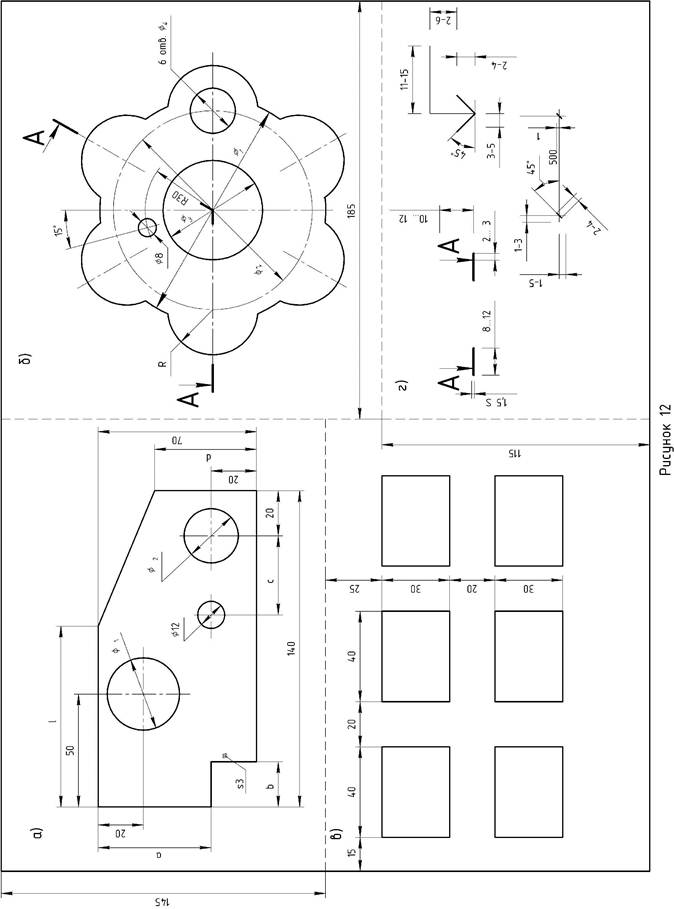 Задача 1.Вычертить изображение плоской детали и нанести ее размеры, которые берутся согласно рисунку 12-а и таблице 2.