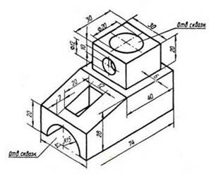 Задача.По заданному аксонометрическому изображению детали построить три основных вида (вид спереди, сверху и вид слева). Индивидуальные задания приведены в таблице 5.