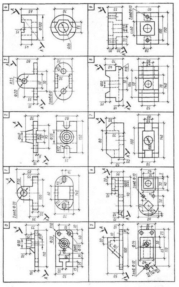 Контрольная работа по инженерной графике состоит из 7-9 листов (количество и номера листов для разных специальностей указаны в таблице 1).