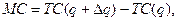 Рассмотрим ситуацию: пусть q – количество произведённой продукции, ТC(q) – соответствующие данному выпуску совокупные издержки (total costs), тогда Dq – прирост продукции, а DТС прирост издержек производства.
