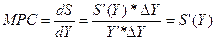 Использование производной позволяет определить такую категорию, как предельную склонность к потреблению MPC (marginal property to consume), показывающую долю прироста личного потребления в приросте дохода:
