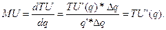 При бесконечно малых изменениях предельная полезность есть производная от совокупной полезности, которая представлена как функция от потребляемого количества продукта: