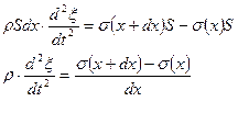 - производная от смещения по координате. Подставляем значение относительного удлинения в уравнение (*):