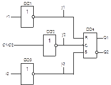 1. Нарисовать временные диаграммы сигналов в точках схемы Q1, Q2, y1, y2, y3. Составить таблицу истинности схемы.