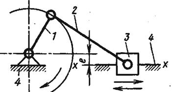 На сх. д кривошип 1 выполнен в виде эксцентрика и помещен внутрь охватывающей детали шарнира 1—2.