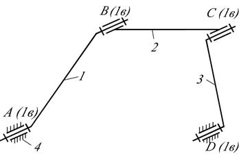 Плоский 4-хзвенный механизм с одноподвижными вращательными кинематическими парами (рис.2.10а) с учетом неточностей изготовления (например, вследствие не параллельности осей A и D) оказывается пространственным. Сборка кинематических цепей 4, 3, 2 и отдельно 1, 4 не вызывает трудностей. Однако, соединить звенья I и 2 в кинематической паре В (одноподвижная вращательная) можно будет только путем угловых деформаций звеньев.