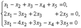 Ранг r матрицы равен 2, число n неизвестных равно 5, система нетривиально совместна. Размерность пространства решений этой однородной системы равна 3: d = n − I = 5 − 2 = 3.