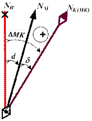 ) отклонен к востоку (к Е) от истинного меридиана (NИ), то поправка магнитного компаса (DМК) считается положительной (рис. 3.9) и при вычислениях ей придается знак «+».