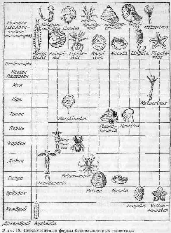 В процессе развития животного мира при общем прогрессивном поступательном движении имеются многочисленные ответвления определенных групп, эволюция которых как бы останавливается на десятки, а то и на сотни миллионов лет. Отдельные стороны перспстентности растений и микроорганизмов были уже рассмотрены. Беспозвоночные животные, которых можно отнести к персистентным формам, представлены на рис. 18.