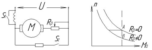 1)Регулировка с помощью активного сопротивления, включенного в цепь якоря.