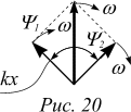 Указанным требованиям удовлетворяет суперпозиция волн одинакового размаха, бегущих навстречу друг другу. Распределение амплитуд в этом случае представляет собой стоячую волну. Пусть k - волновое число волны амплитуды вероятности, бегущей слева направо, тогда волновое число волны, бегущей справа налево, равно -k. Стрелки обеих волн вращаются в одну и ту же сторону. Разность фаз вращения стрелок в точке x равна