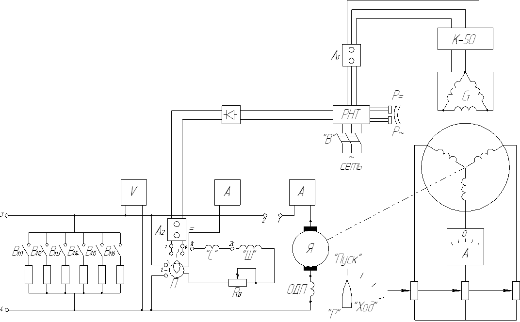 После окончания процесса пуска регулятором напряжения (РН) устанавливают напряжение