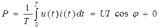 Среднее значение p(t) за период Т называется активной мощностью и полностью определяется первым слагаемым уравнения (5.1):